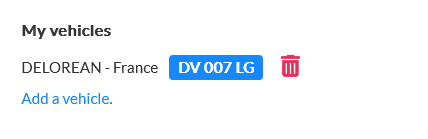 To register your car plate on Sharvy, you can go to : "Account > My account" and "add a vehicle" :