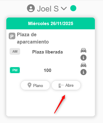 El botón “Abrir” solo aparece para las reservas válidas del día en curso.