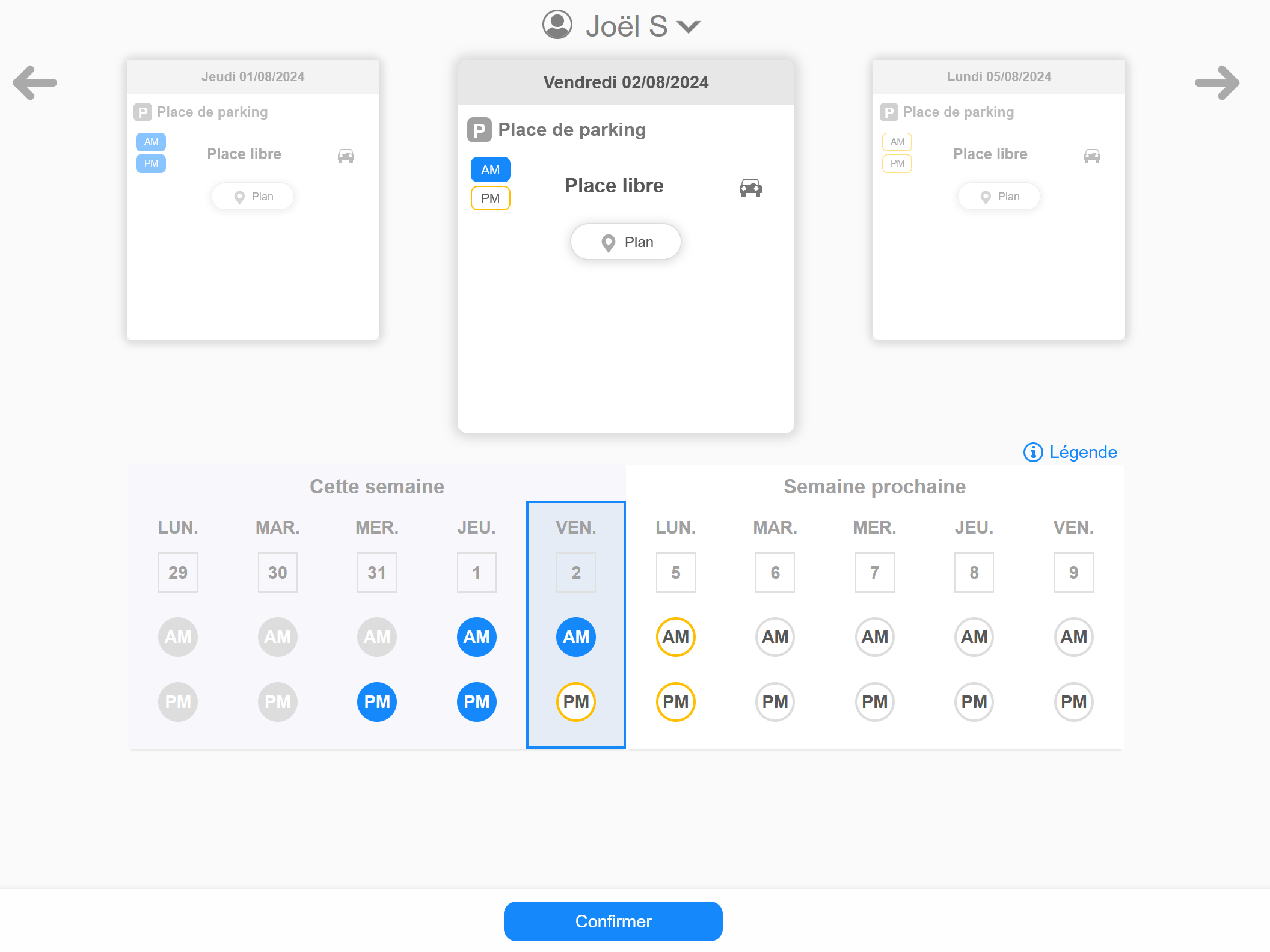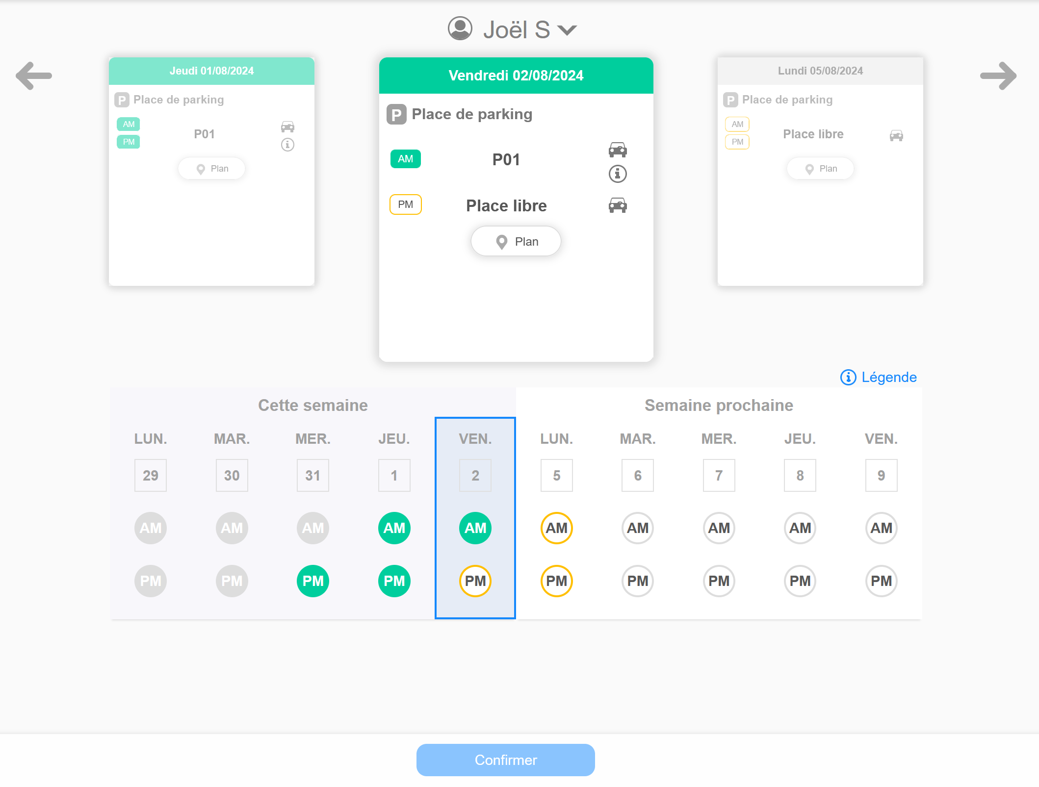 - Les jours où vous utilisez votre place sont maintenant affichés en vert :