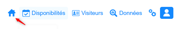 Quand vous vous connectez sur la plateforme, la page d'accueil affiche toutes vos demandes et leurs statuts sur un calendrier. Cette page est toujours accessible via le bouton Mes demandes dans la barre de navigation en haut de la page :